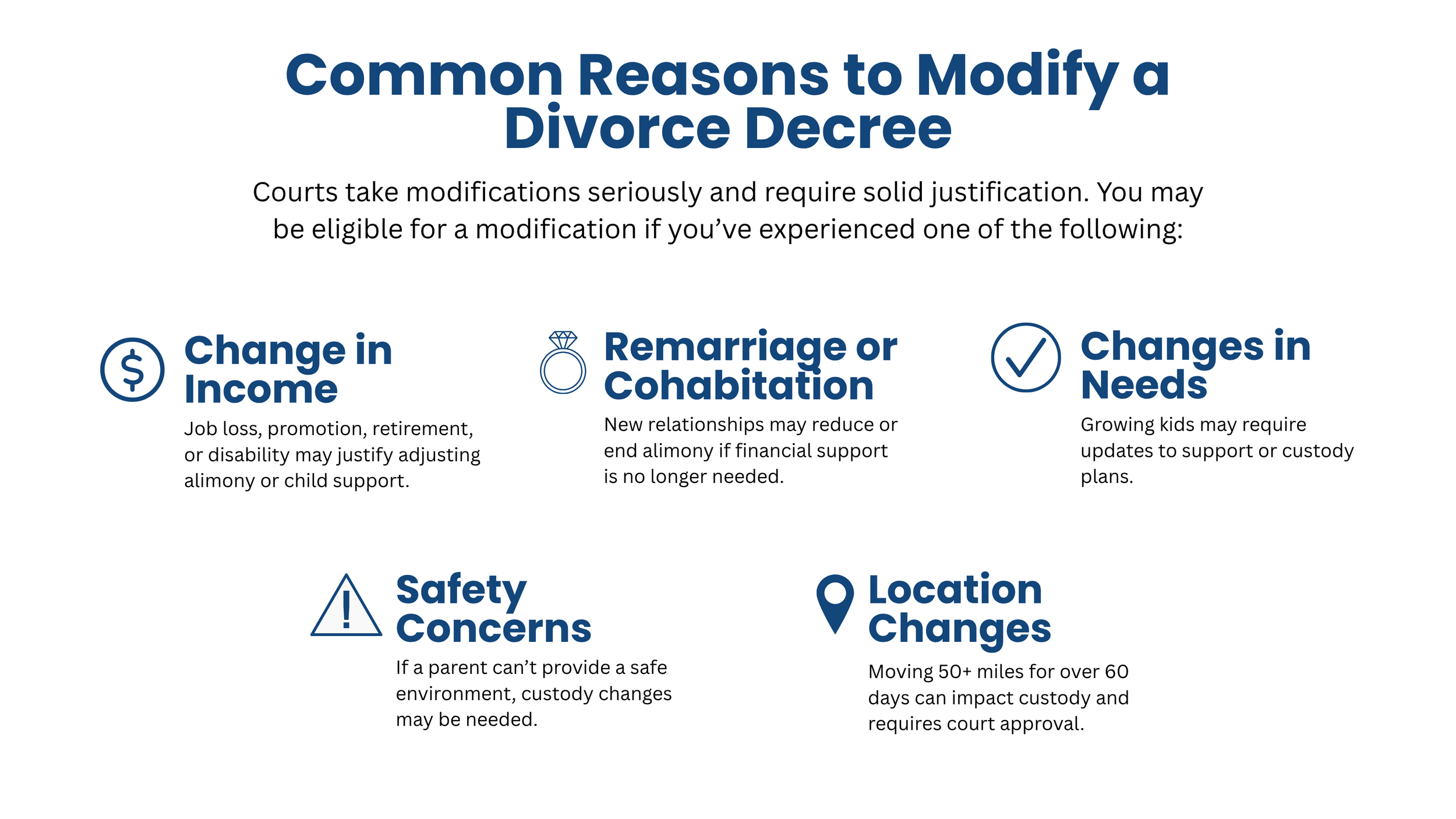We help both the party seeking modification and the party responding to a request, ensuring your interests are protected every step of the way.